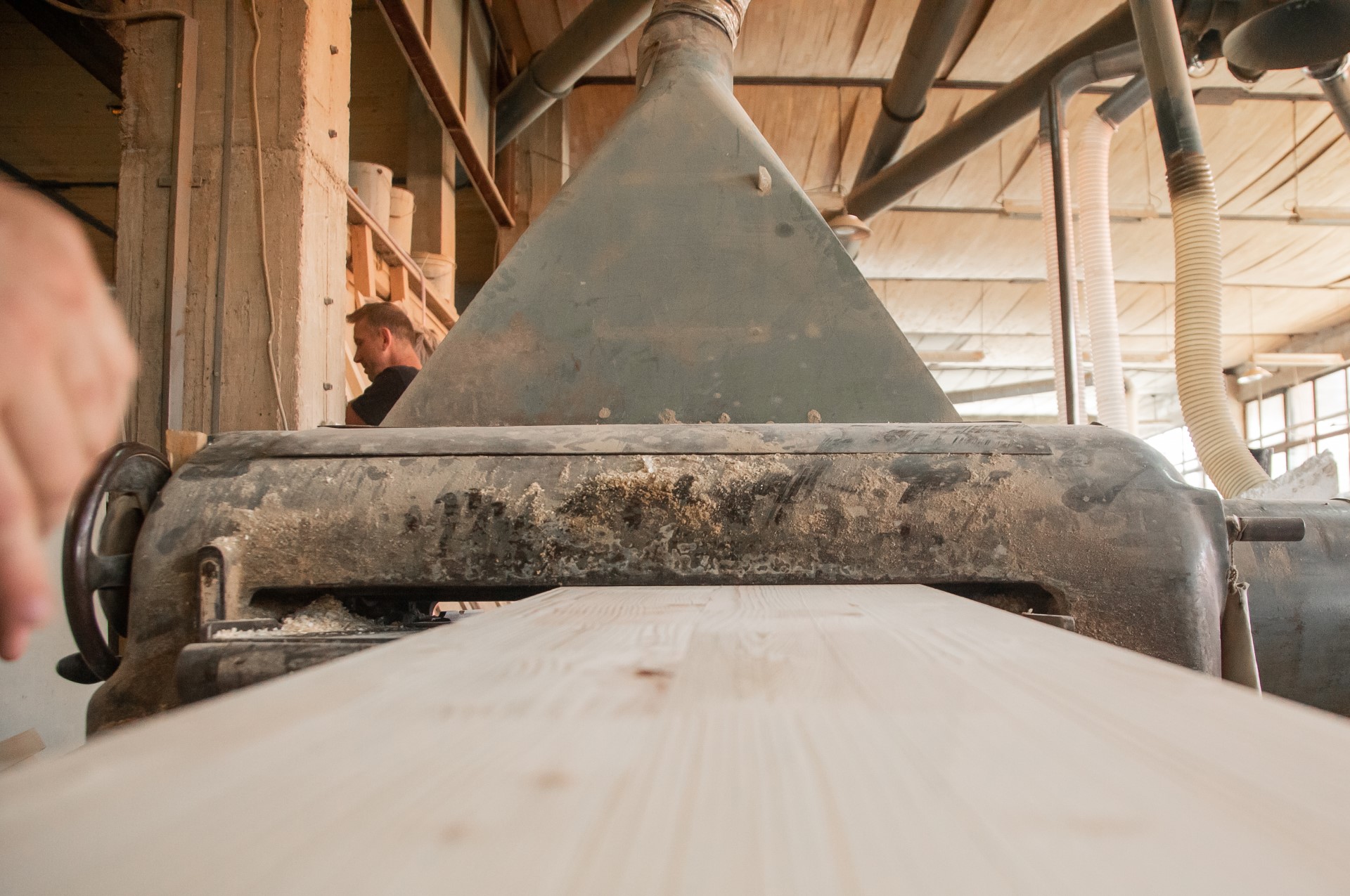 In unserer Produktion geben wir besonders Acht auf die Qualität des Holzes, das wir im Herstellungsprozess benutzen.